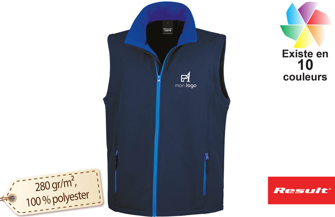 - Disponible aussi en bodywarmer femme en softshell léger personnalisé.