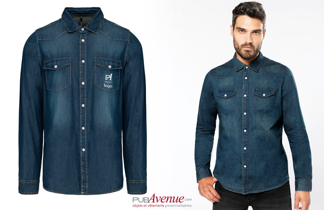 Inspirée de l’univers du denim et du style western, la chemise country pour homme personnalisée allie authenticité et modernité. Sa coupe ajustée et son aspect légèrement délavé en font un vêtement idéal pour les équipes souhaitant affirmer une image à la fois professionnelle et décontractée. Les points forts du produit :