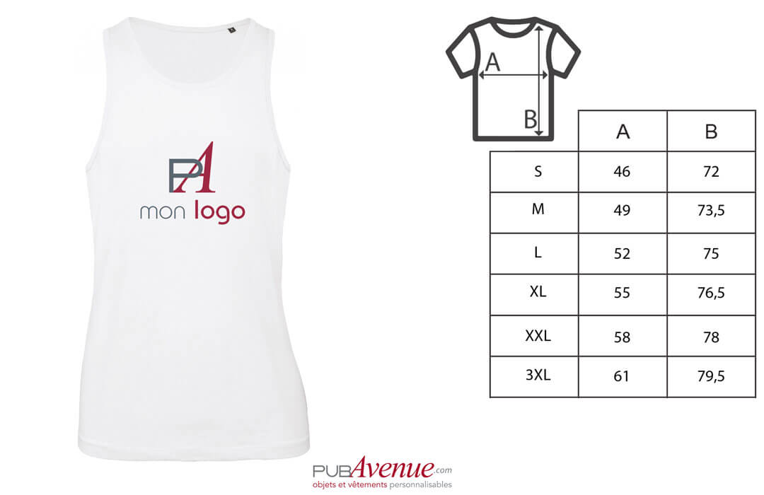 Débardeur b&c pour homme personnalisé en coton bio blanc