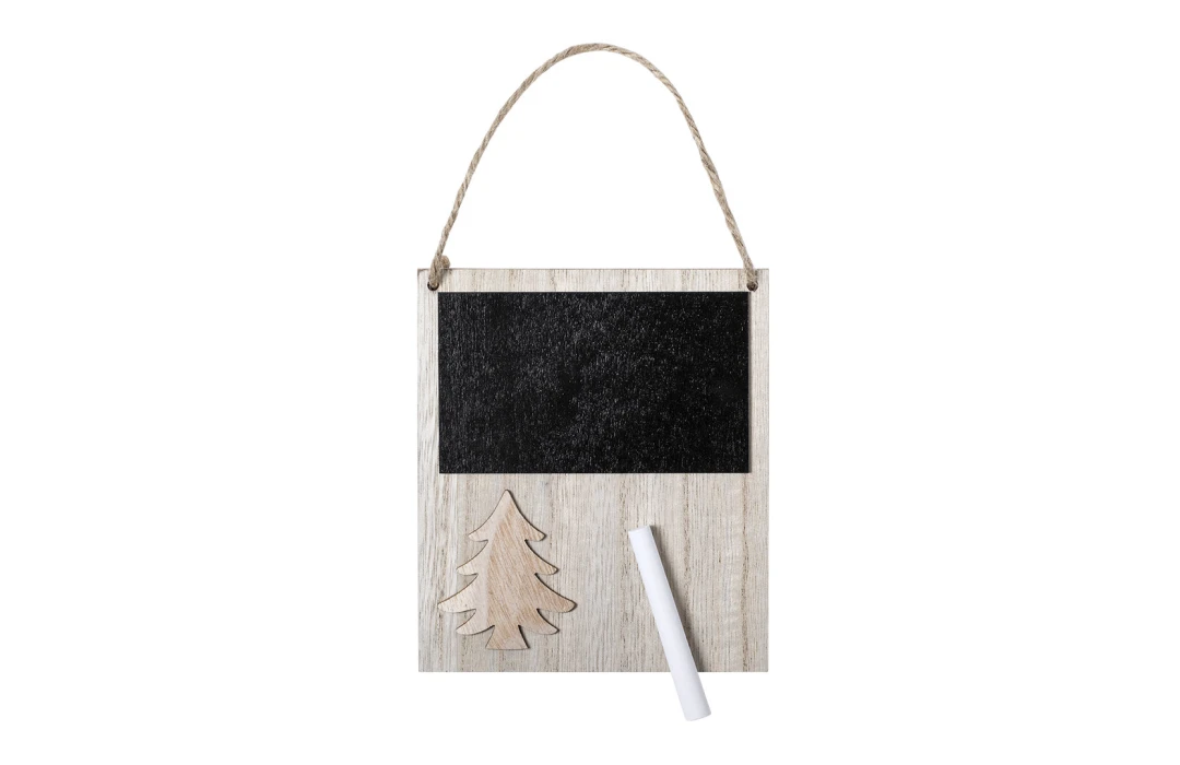 Offrez une touche décorative et naturelle à vos campagnes de fin d’année avec la décoration magnétique de Noël en bois avec craie. Originale et ludique, cette pièce en forme de sapin est confectionnée en bois doux au toucher et intègre un dos magnétique ainsi qu’un cordon de jute pour une suspension facile. Elle permet d’écrire un message ou un vœu à la craie, ajoutant une note personnalisée à chaque espace.