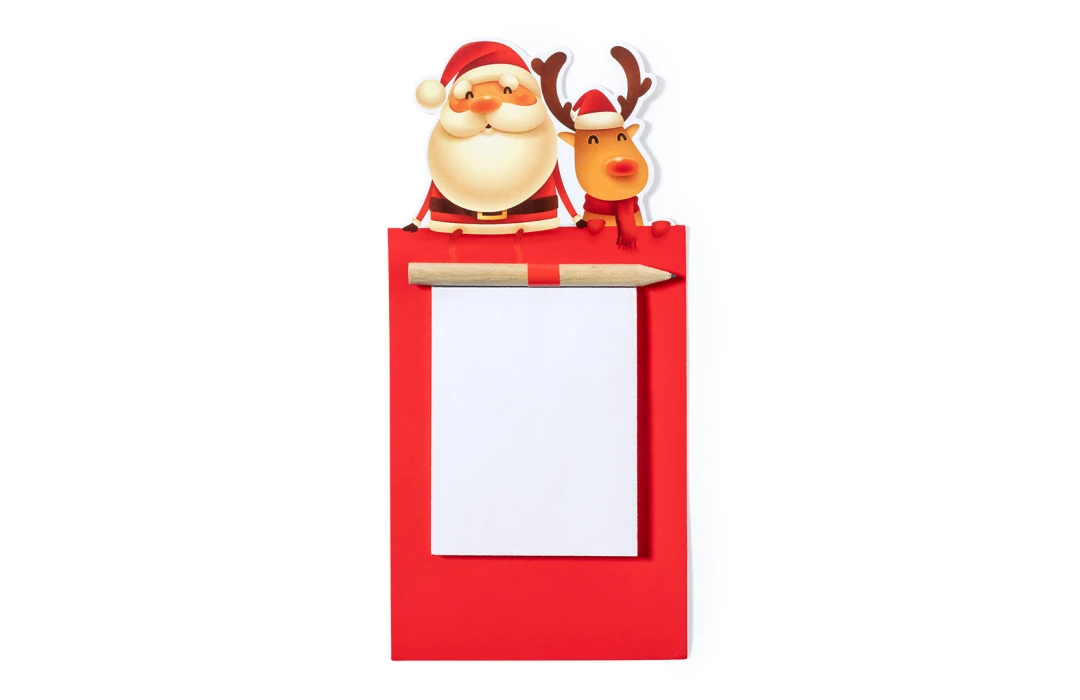 Diffusez l’esprit des fêtes jusque dans les petits détails avec le magnet bloc-notes de Noël publicitaire personnalisé avec logo. Pratique et décoratif, ce support combine un design festif (Père Noël ou renne) à une véritable utilité au quotidien. Accroché sur un réfrigérateur ou un tableau magnétique, il garde votre marque visible tout au long de la période des fêtes, tout en offrant un espace pour noter des idées, messages ou listes de courses. Un cadeau promotionnel simple, joyeux et efficace pour vos opérations de communication saisonnières.
