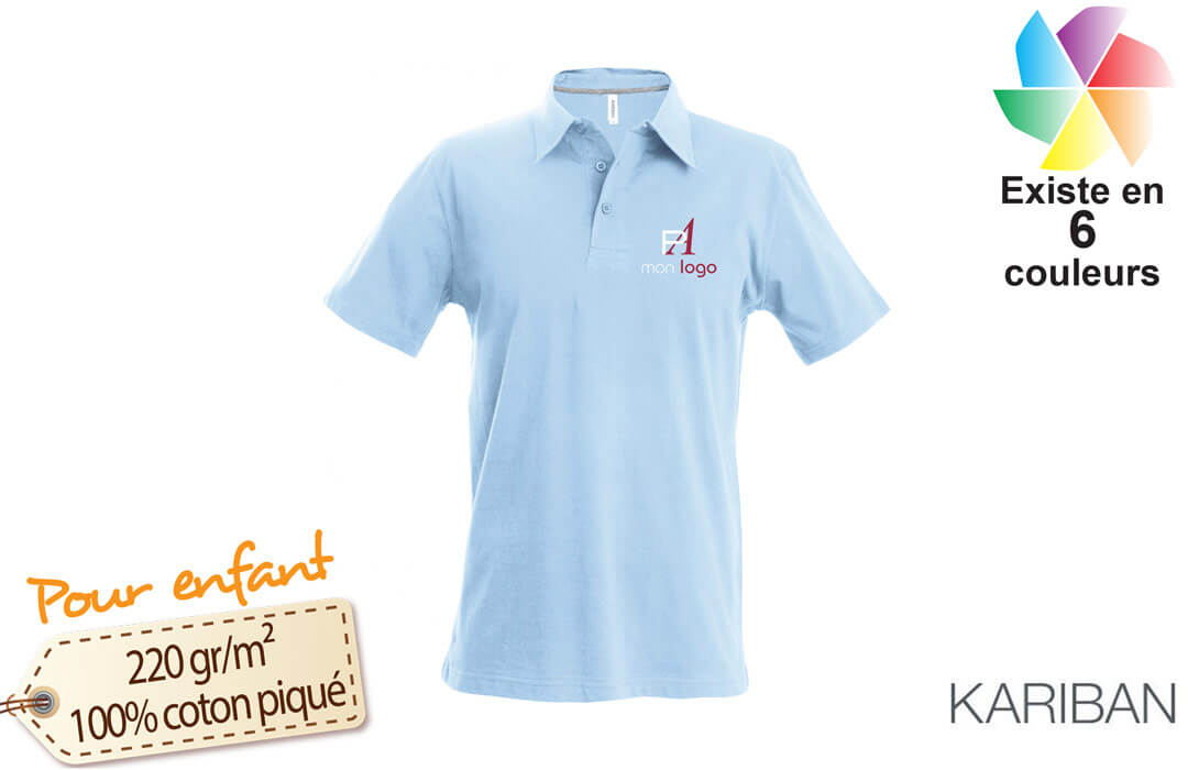 - Disponible également en polo enfant personnalisé Kariban blanc.