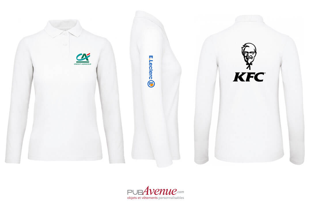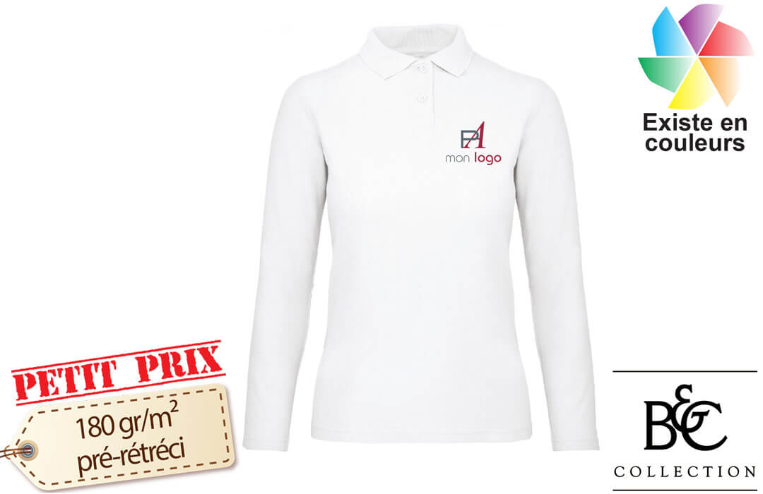 Polo personnalisé femme b&c ID.001 blanc manches longues