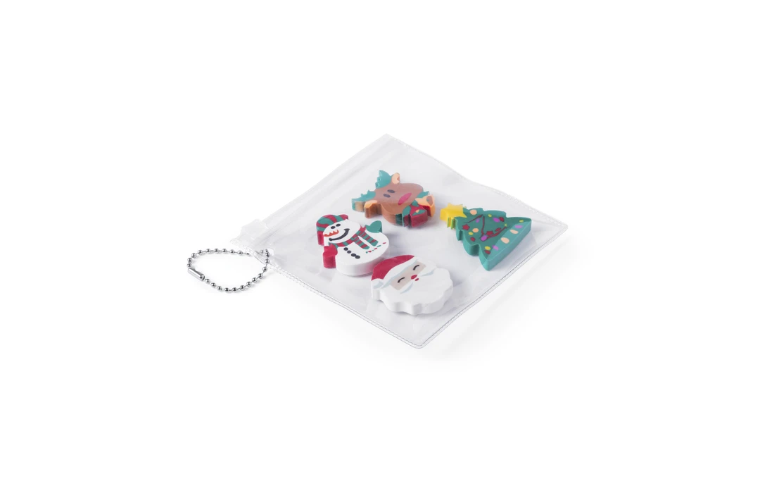 Le set de 4 gommes de Noël personnalisées est un cadeau publicitaire accessible et universel qui plaît aussi bien aux enfants qu’aux adultes. Ces petits objets du quotidien rappellent votre marque à chaque utilisation, tout en véhiculant une image sympathique et festive. Pratiques, colorées et bien présentées, ces gommes constituent un excellent choix pour accompagner une communication conviviale et joyeuse en période de fêtes.