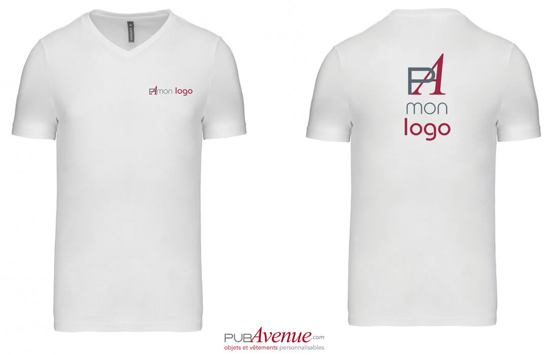 T-shirt prestige blanc pour homme à col V kariban personnalisé